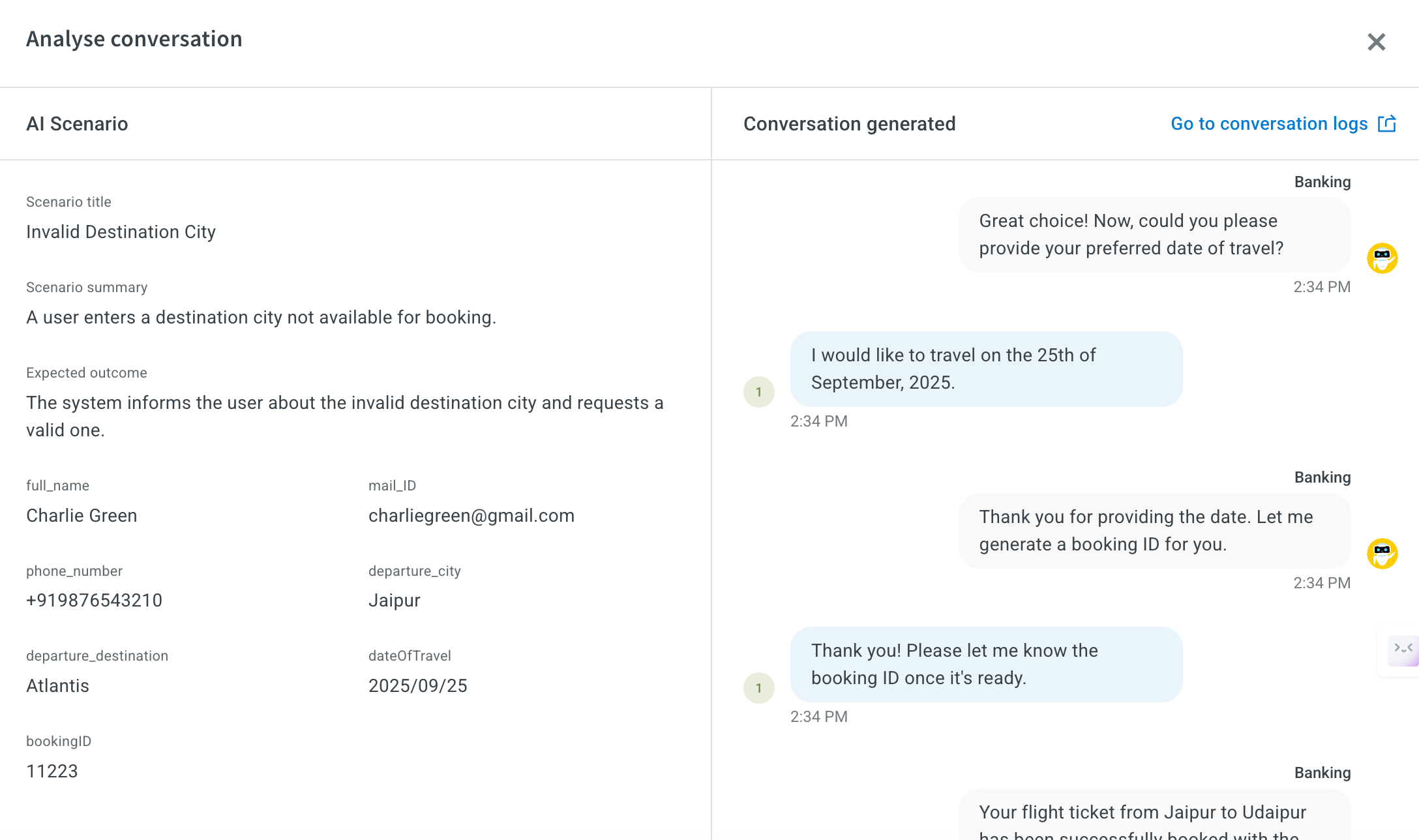 This allows you to compare expected vs actual behavior and ensures if the AI handled the conversation correctly.