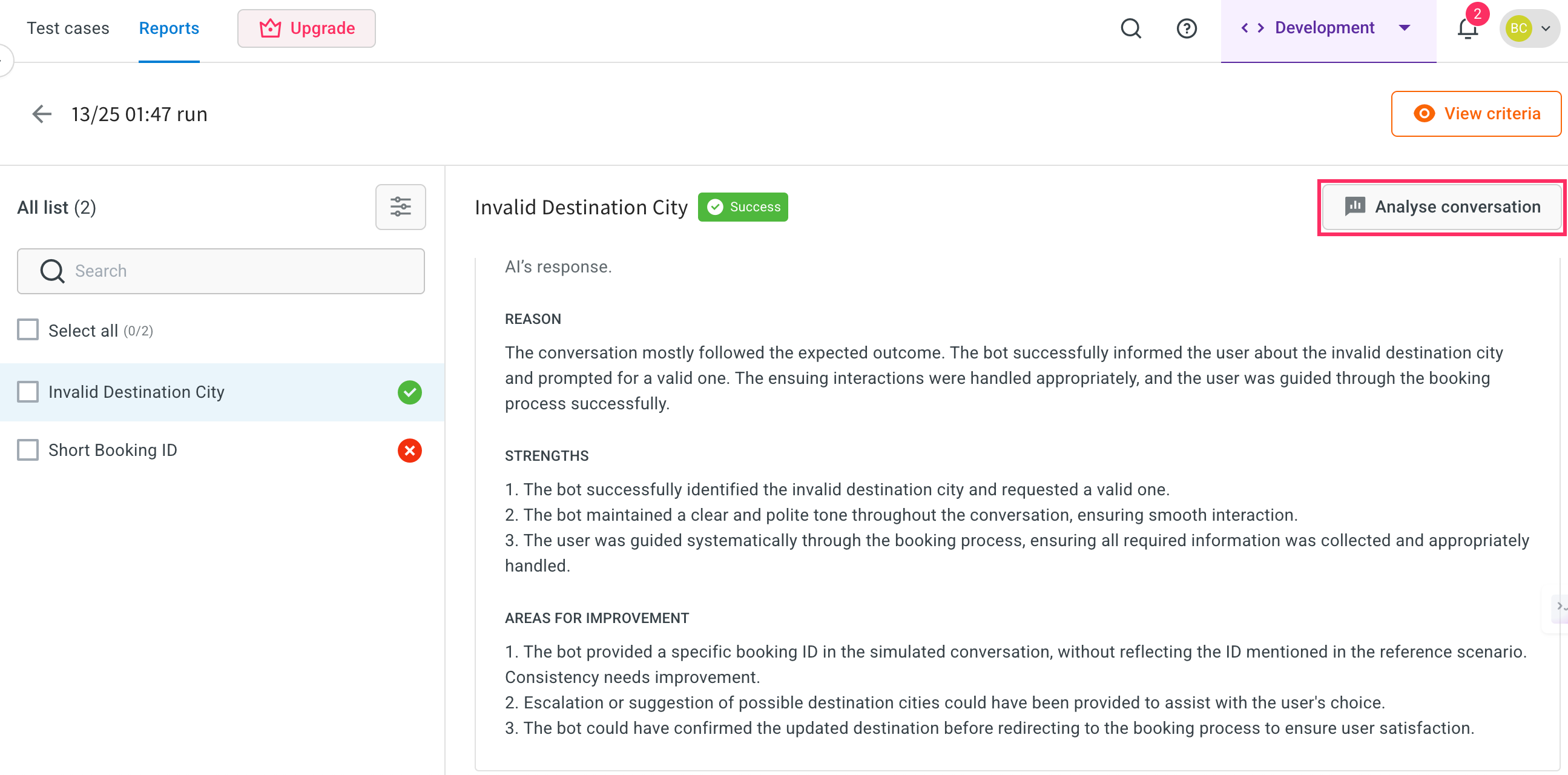 Click on Analyse conversation to review detailed interaction-level analysis.