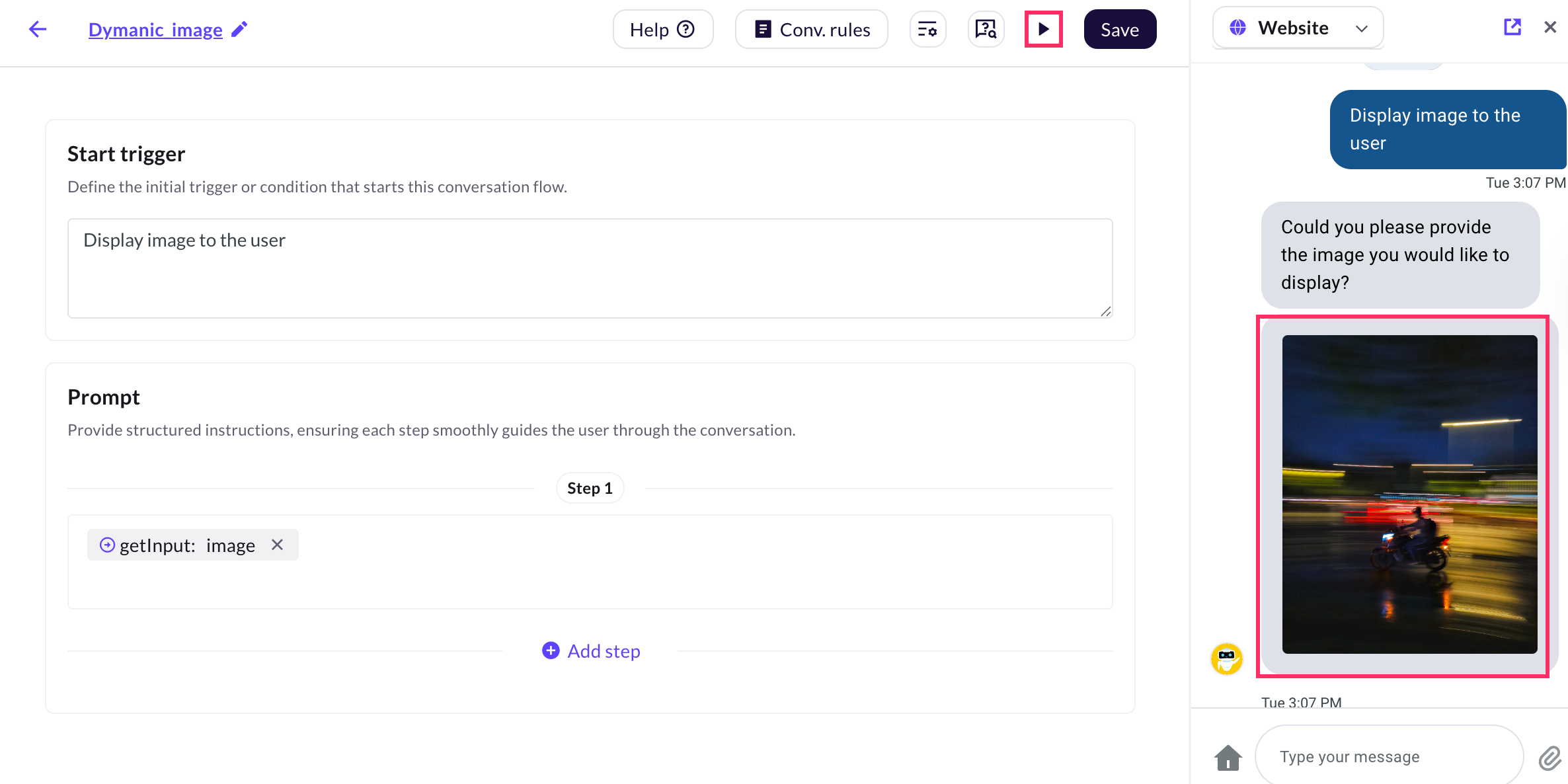 To configure and display dynamic rich media in your AI agent conversation, follow these steps: