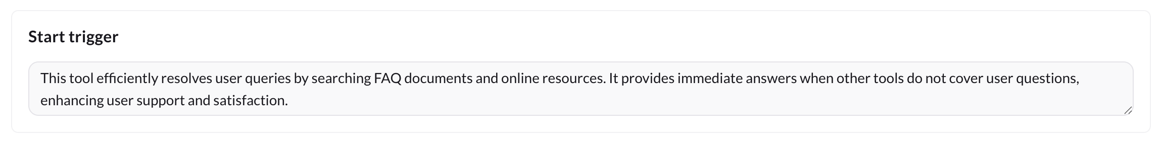 - Start trigger: Automatically triggers the Kb agent when a query requires a knowledge-based response.
