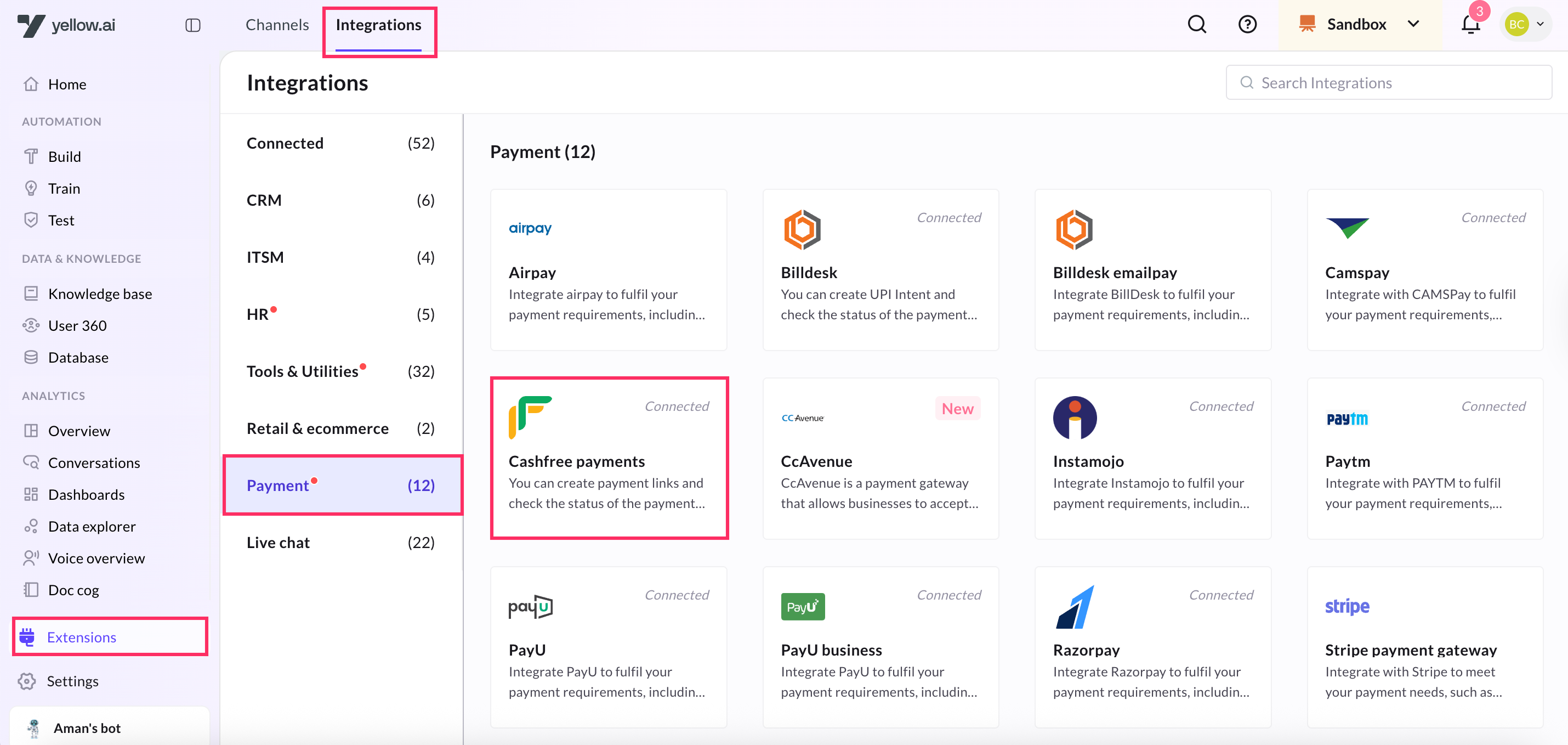 Connecting Cashfree with Yellow.ai