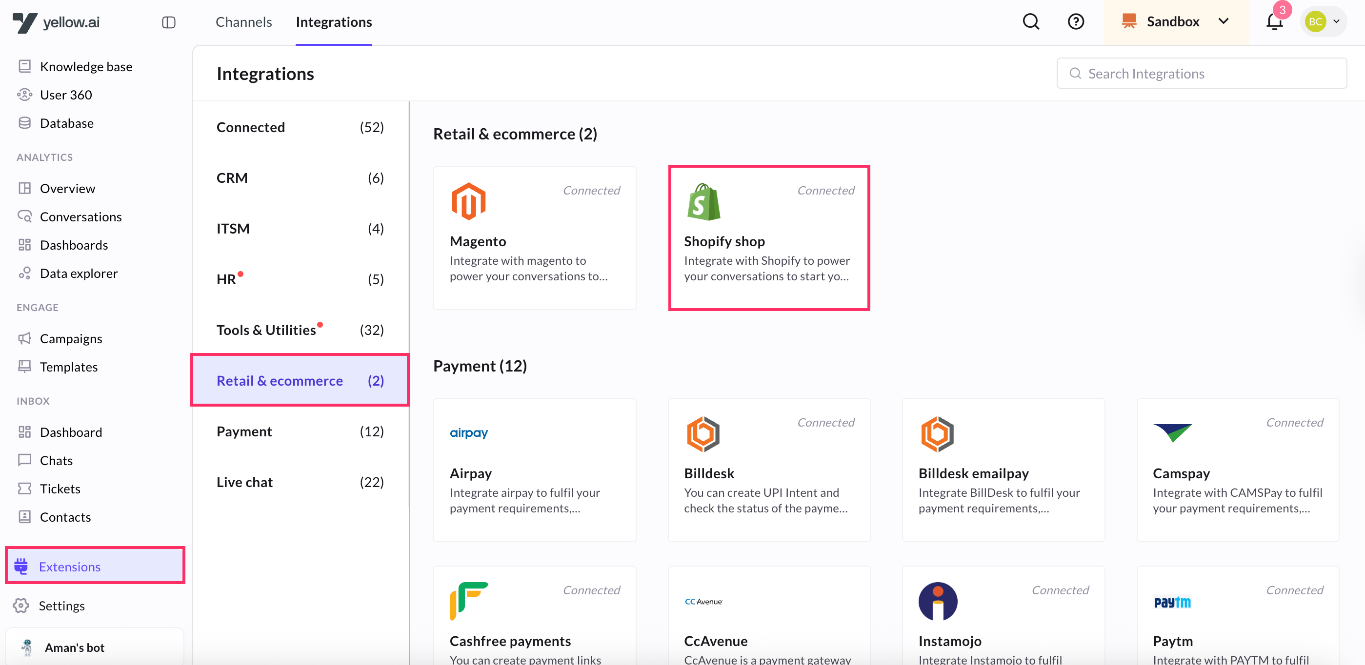 Step 3: Connect the Shopify Store App with Yellow.ai