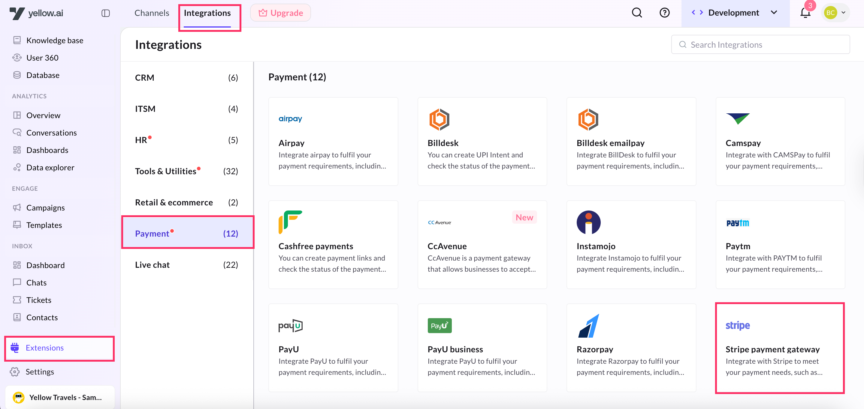 Connect Stripe with yellow.ai